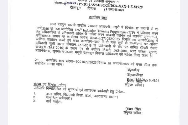 देहरादून। मुख्य सचिव राधा रतूड़ी के निर्देशों पर सभी भारतीय प्रशासनिक सेवा के अधिकारियों के अवकाश के संबध में आदेश जारी किए गए हैं। मुख्य सचिव कार्यालय से जारी आदेश में कहा गया है कि भारतीय प्रशासनिक सेवा के सभी अधिकारीगण विविध अवकाश जैसे ईएल, सीसीएल, भ्रमण अवकाश, अर्द्ध वेतन अवकाश, मातृत्व अवकाश, पितृत्व अवकाश…